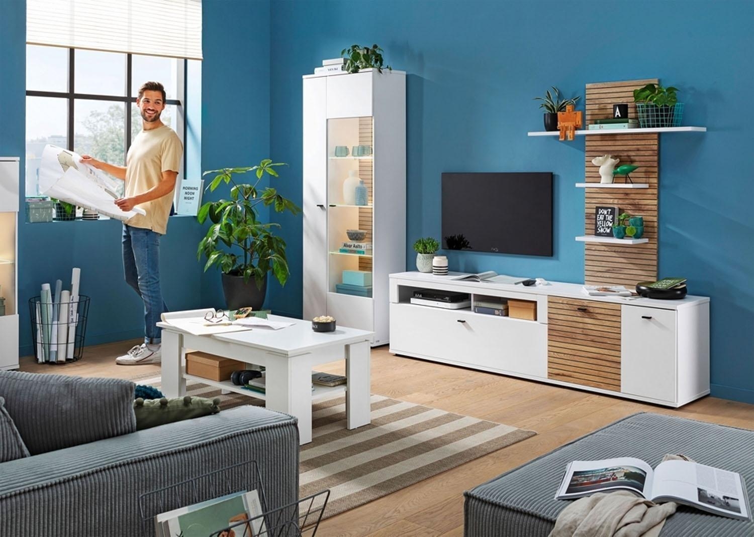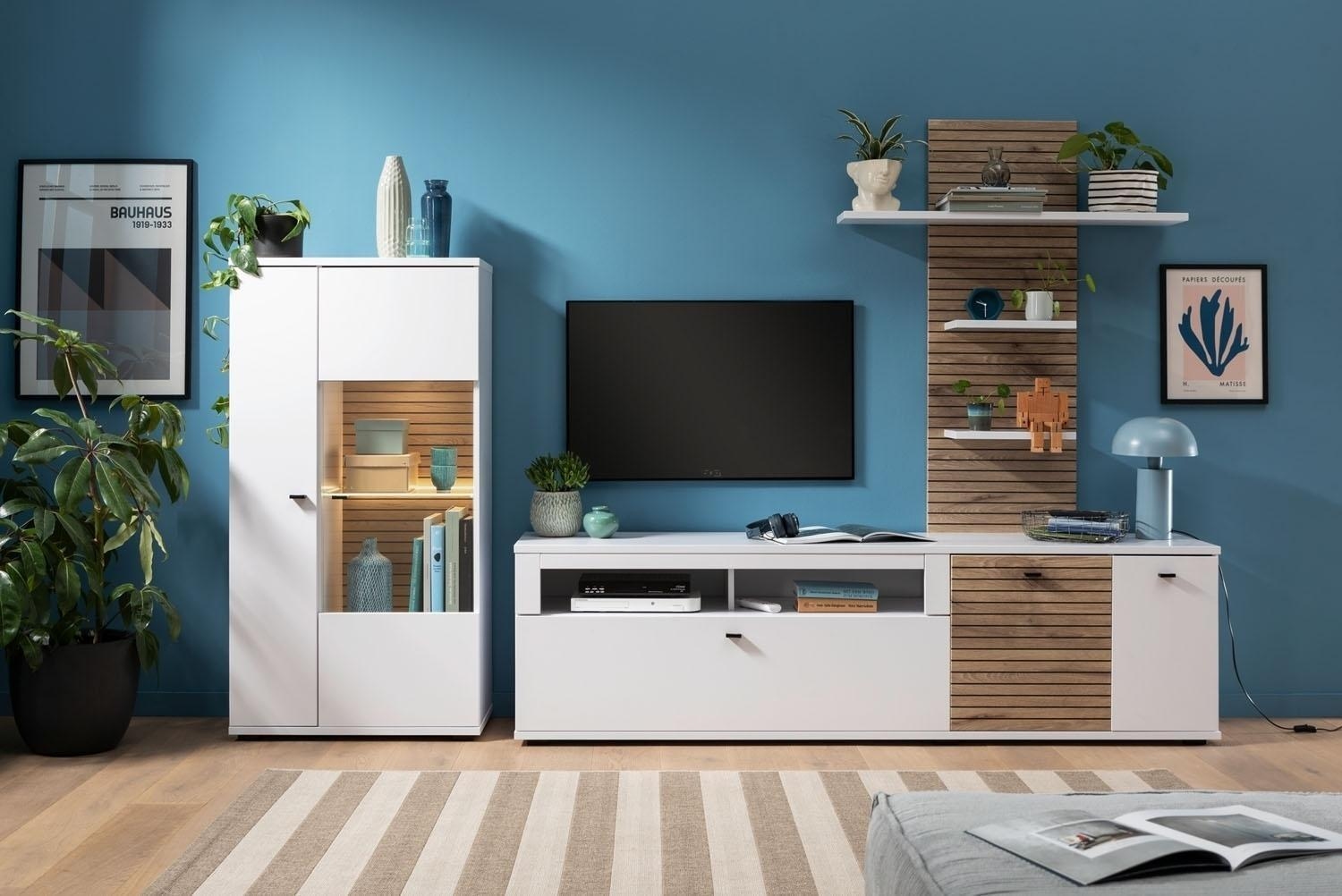 - mit 3 Ablageflächen in Weiß matt Dekor