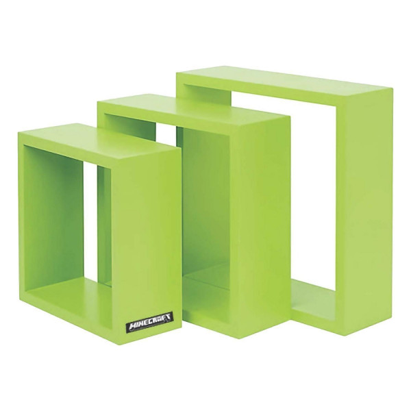 Das Wandregal-Set MINECRAFT ist ein dreiteiliges Set in Grün mit unterschiedlichen Größen. Es eignet sich zur Aufbewahrung von Büchern, Spielen oder Games.