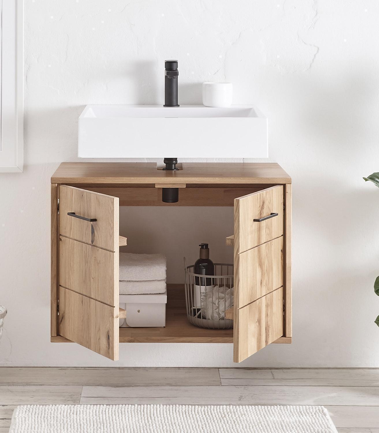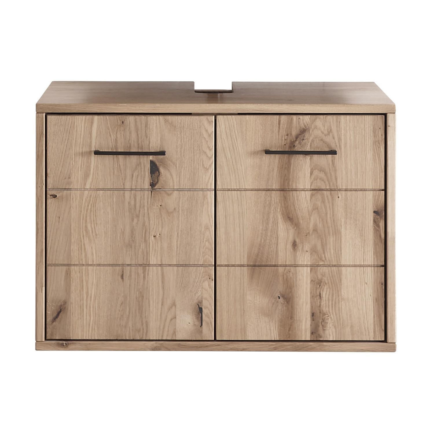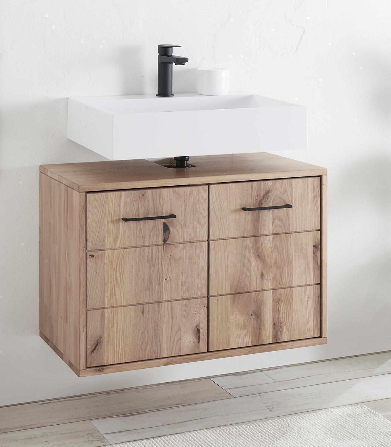 - Waschbeckenunterschrank aus massivem Wildeichenholz