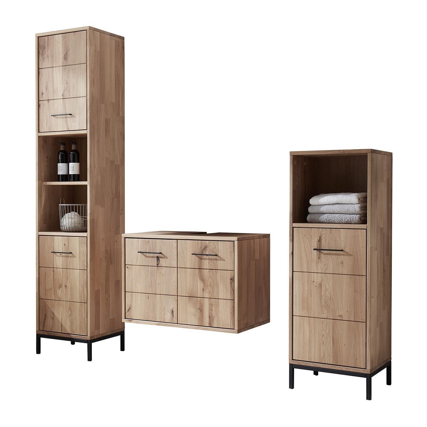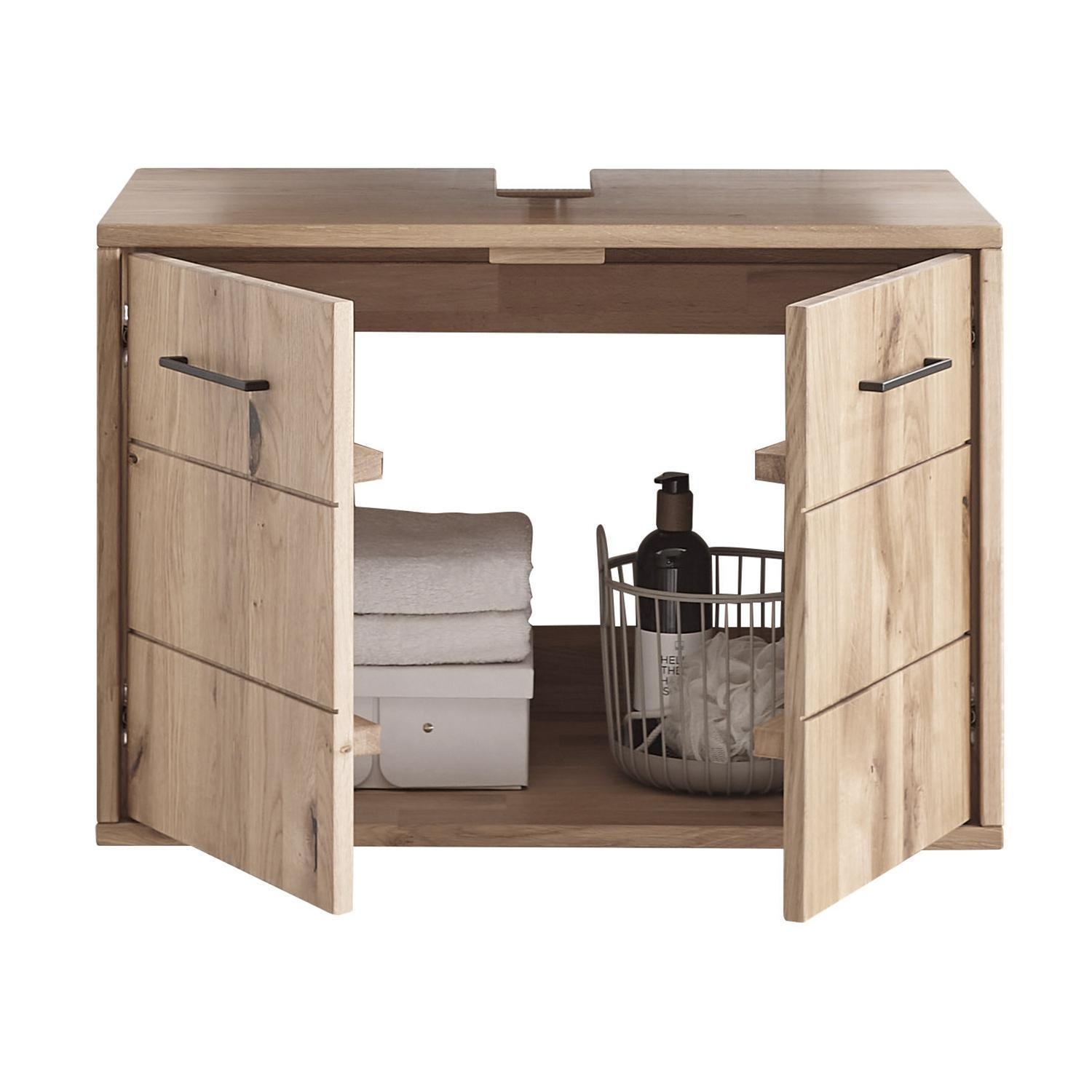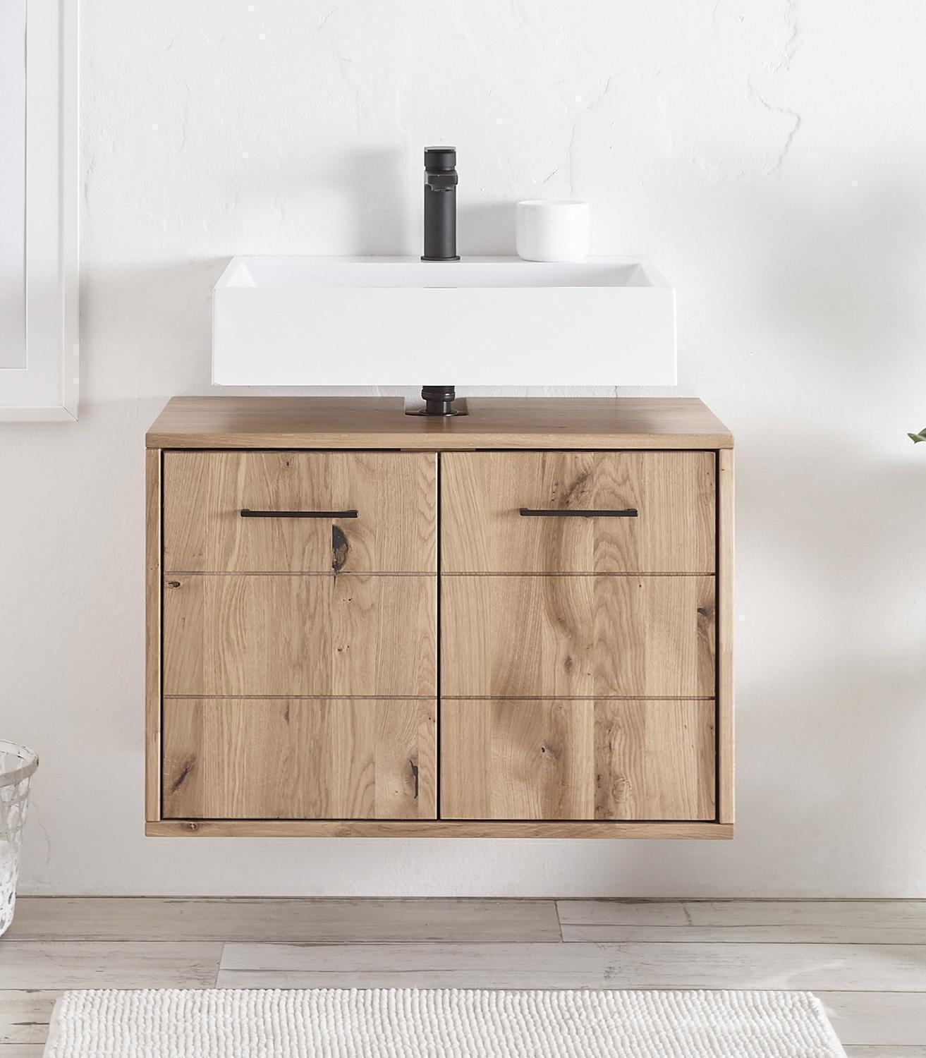 - Waschbeckenunterschrank aus massivem Wildeichenholz