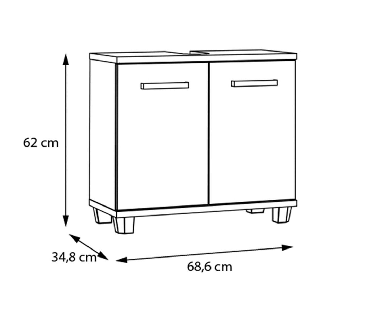 | Lieferumfang: | 1 Waschbeckenunterschrank mit 2 Türen und 1 Einlegeboden |
