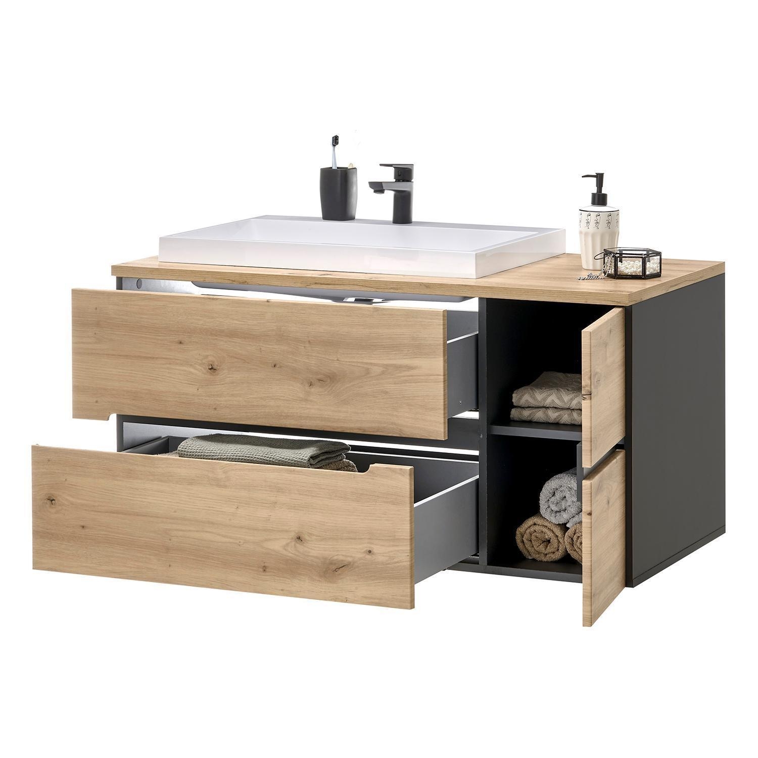 B 110 cm - 2 Schubladen - Artisan Eiche Dekor - Grau matt