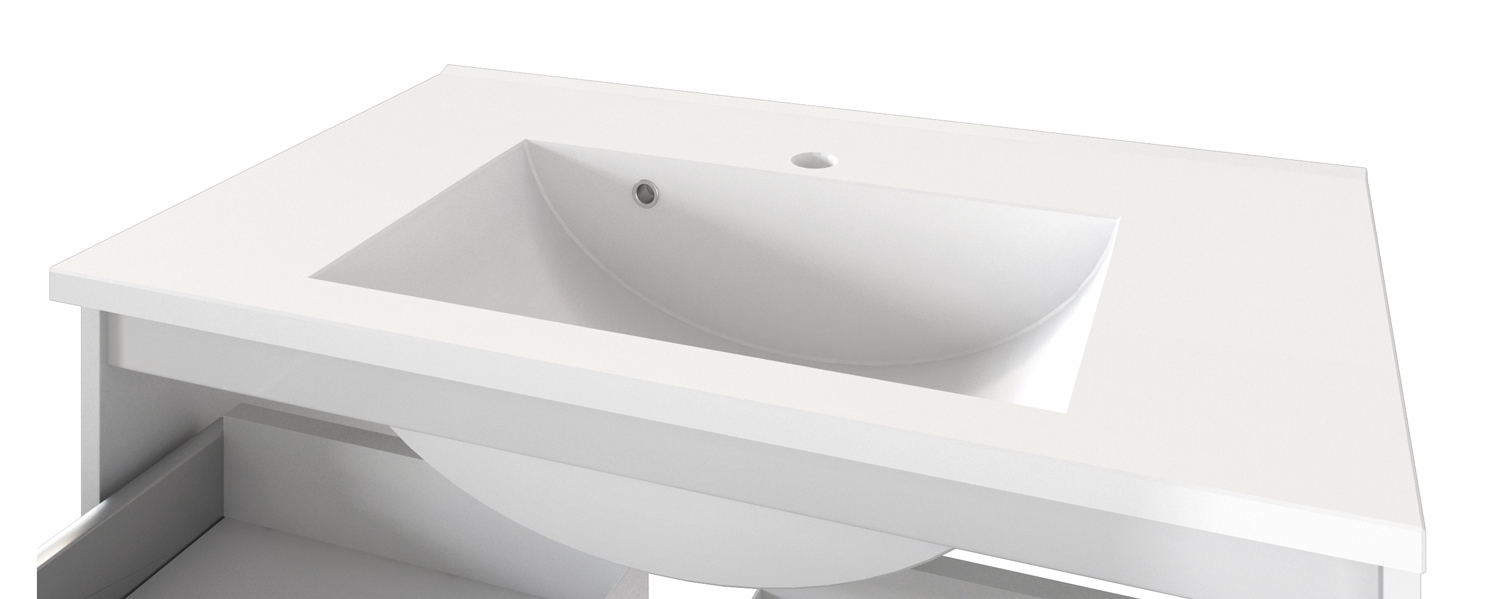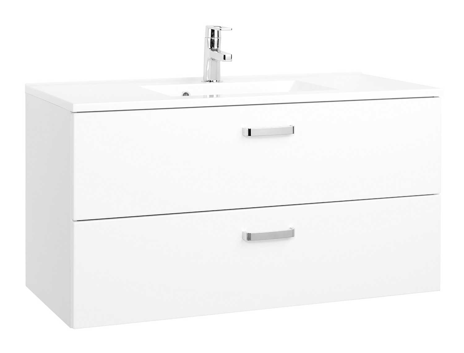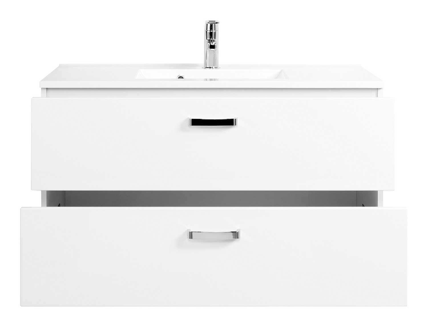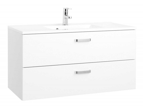 Weiß Hochglanz - B 100 cm - mit Mineralgussbecken