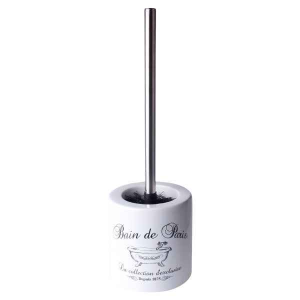 Die WC-Garnitur GIOVANNA vereint Funktionalität und Stil in Ihrem Badezimmer. Mit einer Höhe von 40 cm und einem Durchmesser von 8,5 cm passt sie perfekt neben jede Toilette. Der weiße Keramikbehälter mit Schriftzug, die schwarze Bürste aus Kunststoff und der Metallgriff sorgen für ein elegantes Erscheinungsbild. Diese freistehende WC-Garnitur wird mit einer Bürste geliefert und ist in den Farben Schwarz, Silberfarben und Weiß gehalten.