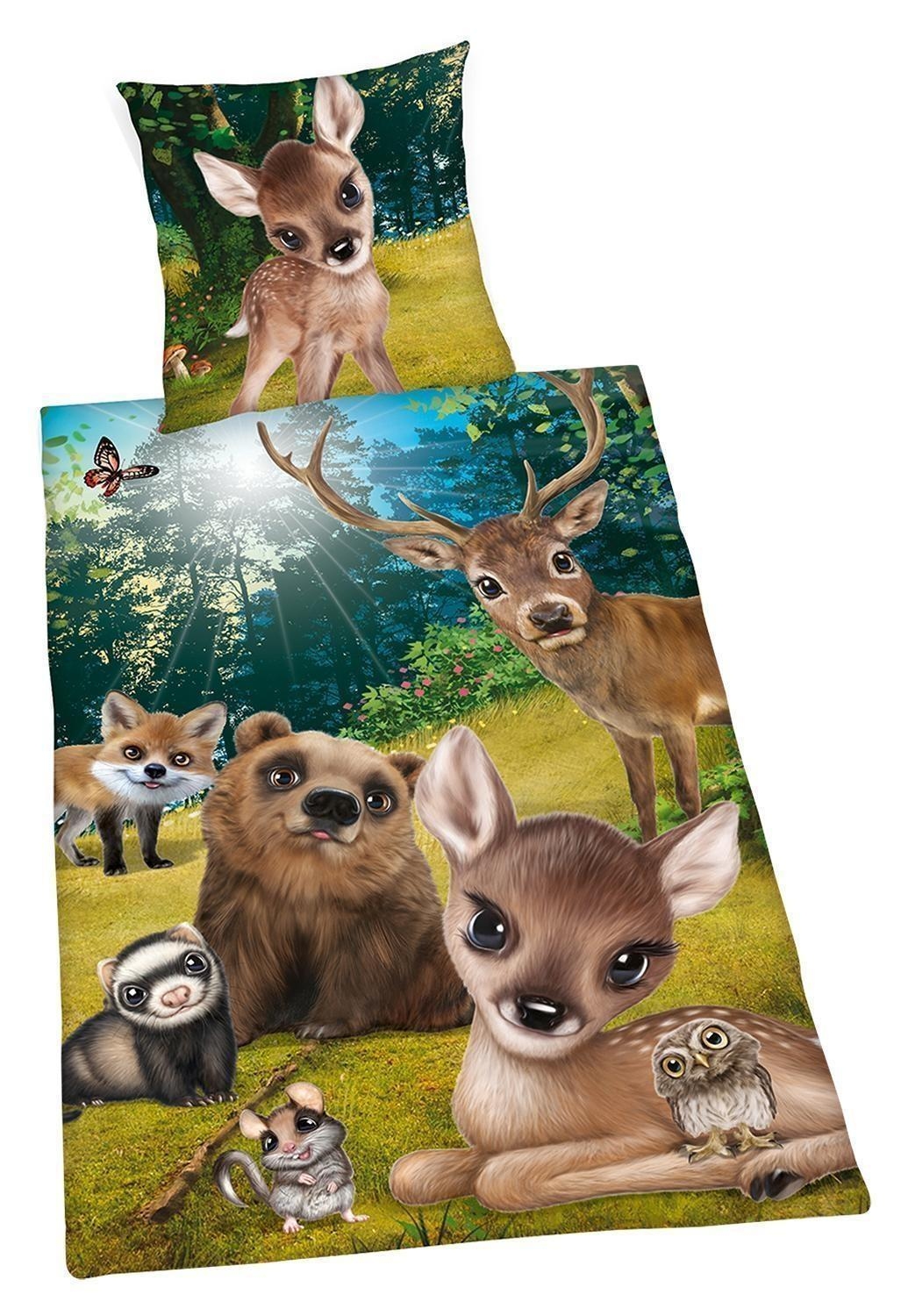 135 x 200 cm - Grün - Braun - mit Reißverschluss - mit Tiermotiv