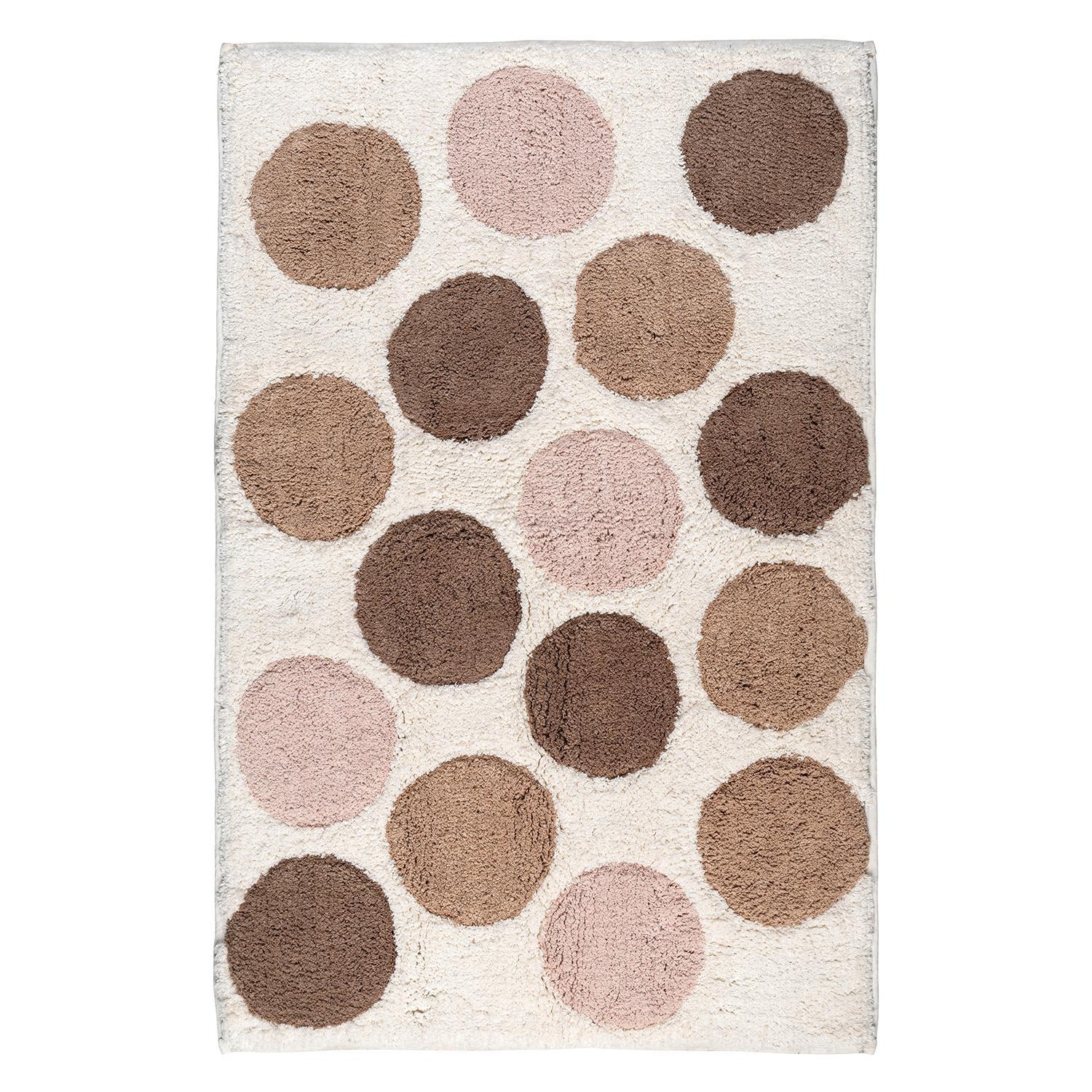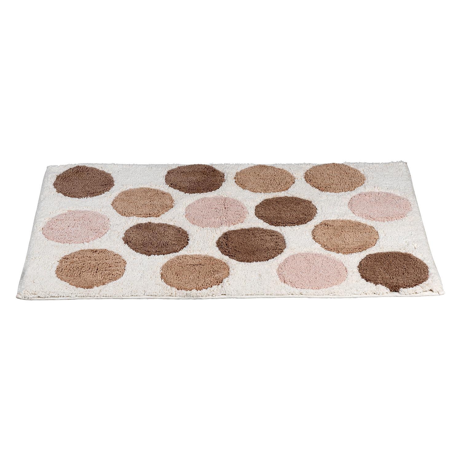 Die Badematte TIBET von Wenko aus 100 % Baumwolle kombiniert stilvolles Design mit Funktionalität. Mit einer Größe von 60 x 90 cm bietet sie eine angenehme Fläche und besticht durch ihr modernes Kreismuster in Braun und Rosa auf beigem Grund. Die rutschhemmende Beschichtung sorgt für sicheren Halt, auch auf glatten Böden. Sie ist waschbar bis 40 °C und für die Nutzung auf Fußbodenheizungen geeignet – ideal für ein gemütliches und sicheres Badezimmer.