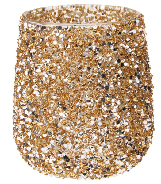 Ø 9 x H 10,5 cm - Goldgelb - Glas - Glasperlen