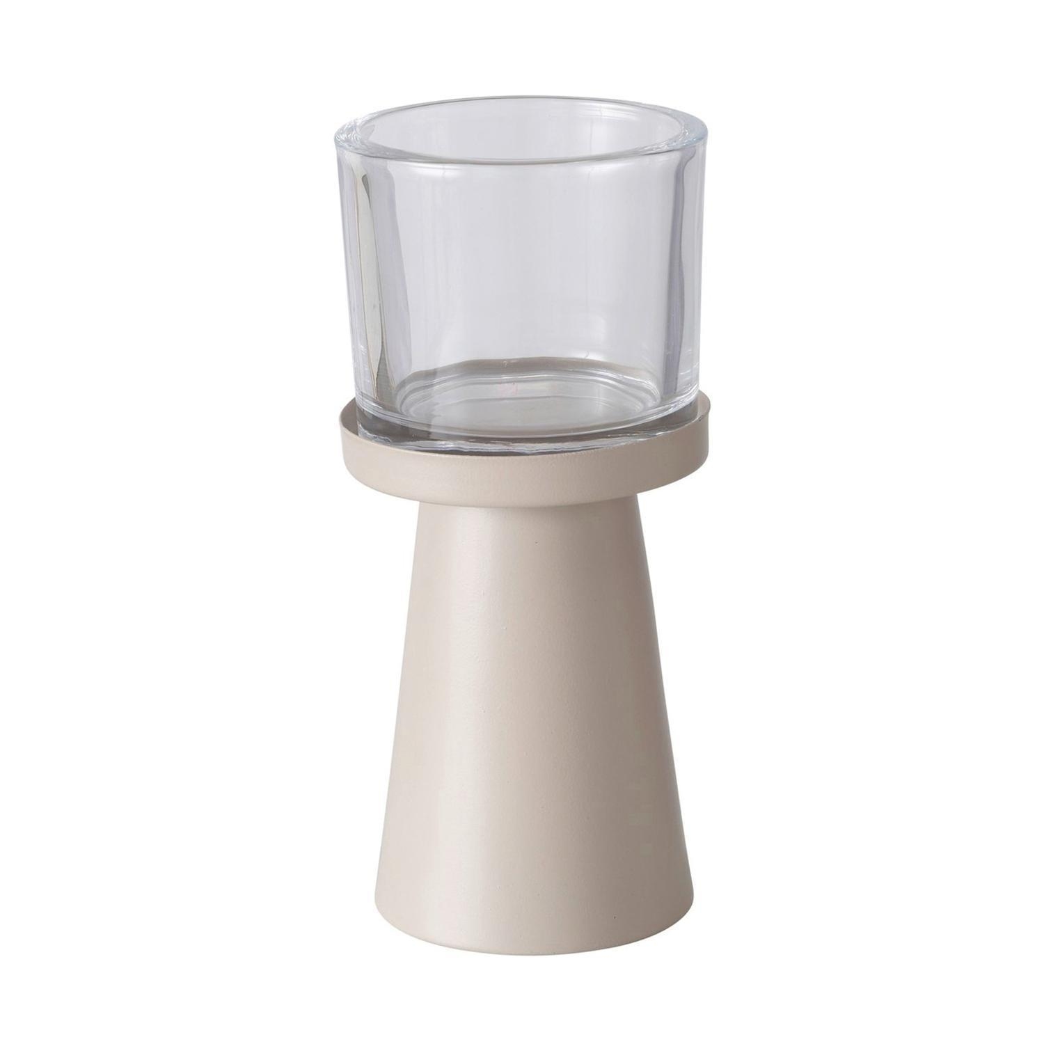 H 19 cm - Beige - Transparent - Eisen - mit Glaseinsatz