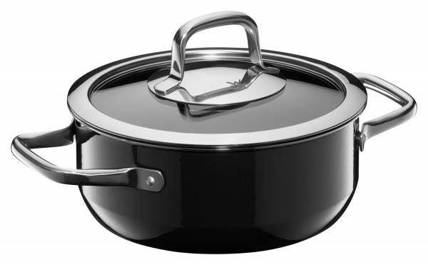 Der Bratentopf von WMF verfügt über eine Fusiontec-Legierung. Fusiontec ist besonders wärmeleitend, schnitt- und kratzfest und sorgt für einzigartige Brat- und Kochergebnisse. Der Glasdeckel bietet jederzeit einen Blick ins Innere und lässt sich dank des Edelstahlgriffes leicht öffnen. Der breite Schüttrand sorgt für müheloses und tropffreies Ausgießen von Flüssigkeiten. Die Hohlgriffe erhitzen sich deutlich weniger als herkömmliche Griffe, da sie die Wärmeübertragung des Kochgeschirrs auf den Griff verringern. Der Kochtopf mit Allherdboden ist für alle Herdarten geeignet.
