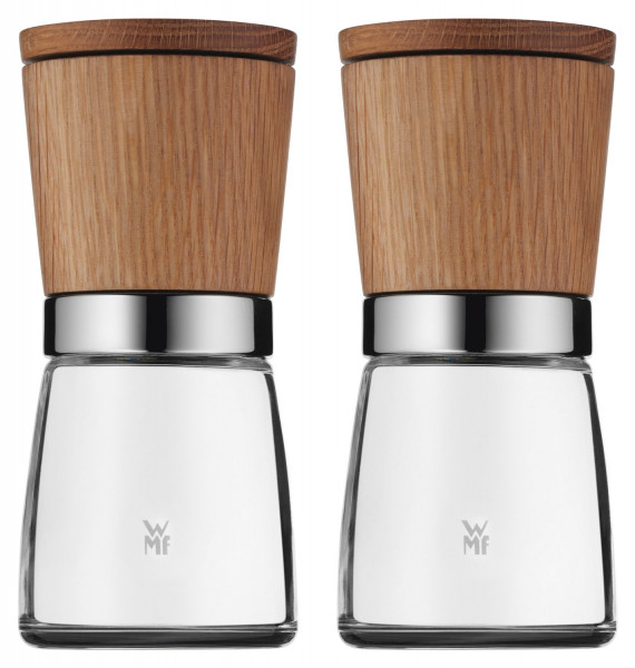 - 2 Gewürzmühlen aus Glas und Eichenholz