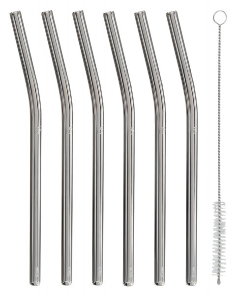 6-teilig - 23 cm - Borosilikatglas - mit Knick im Halm - mit Reinigungsbürste