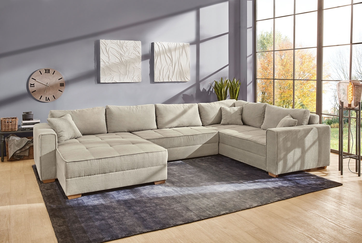 - Große Wohnlandschaft mit Cordbezug in beige
