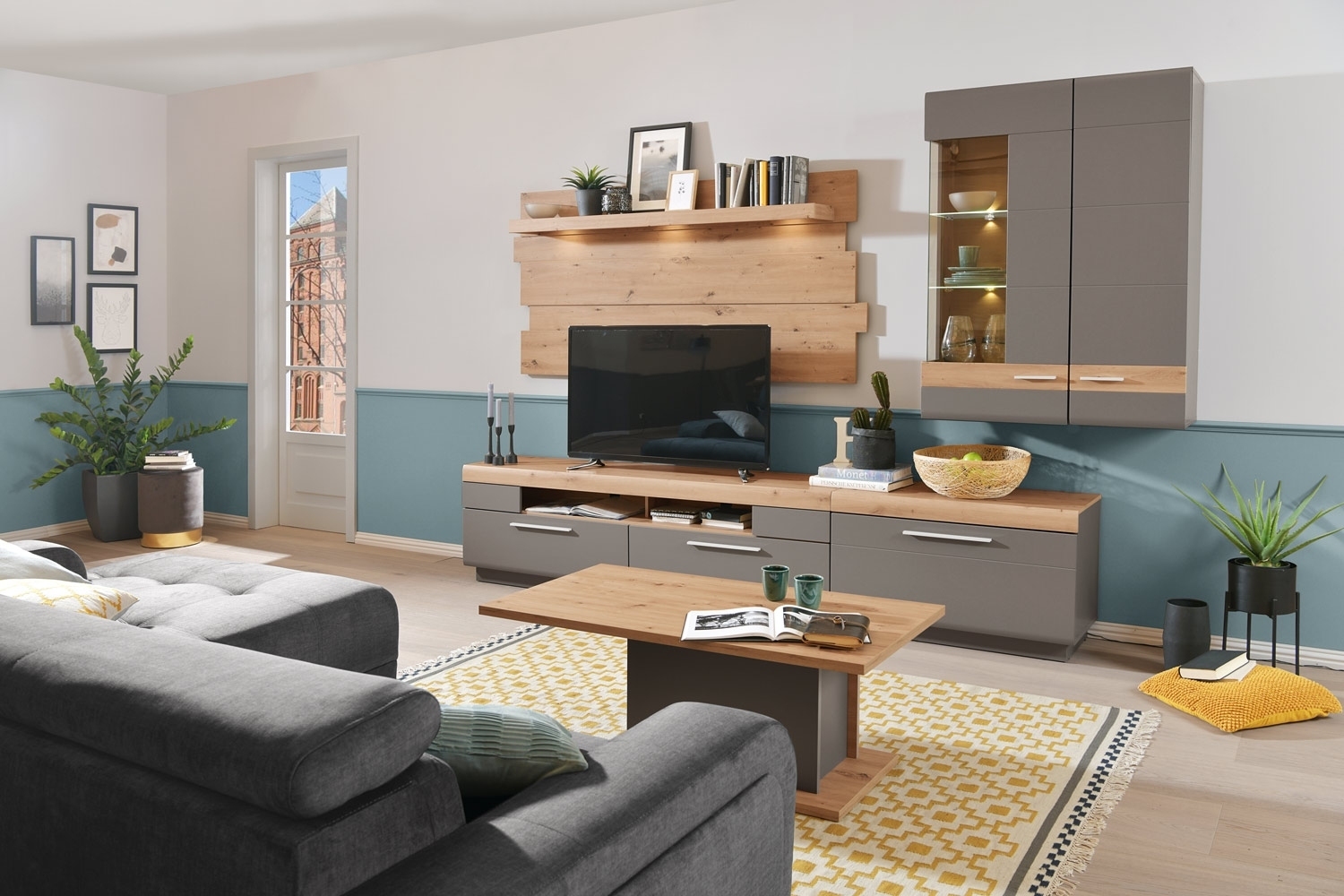 Artisan Eiche Dekor - Basalt matt Dekor - 4-teilig - LED-Beleuchtung