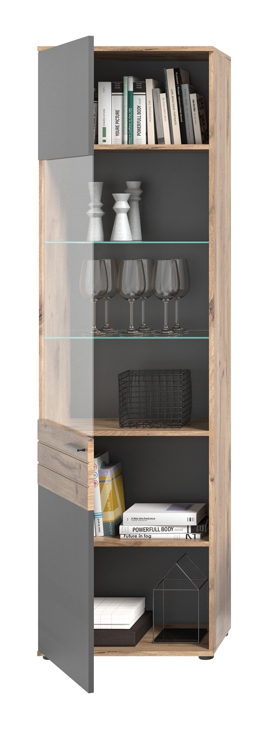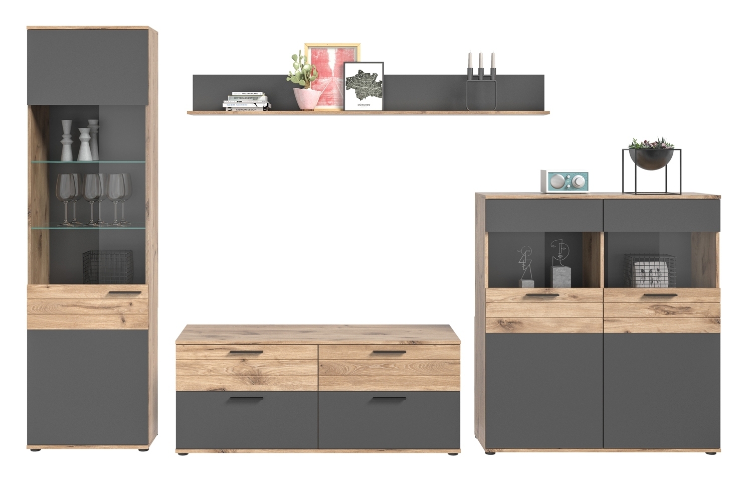 - Wohnwand in Nox Eiche Dekor und basaltgrau