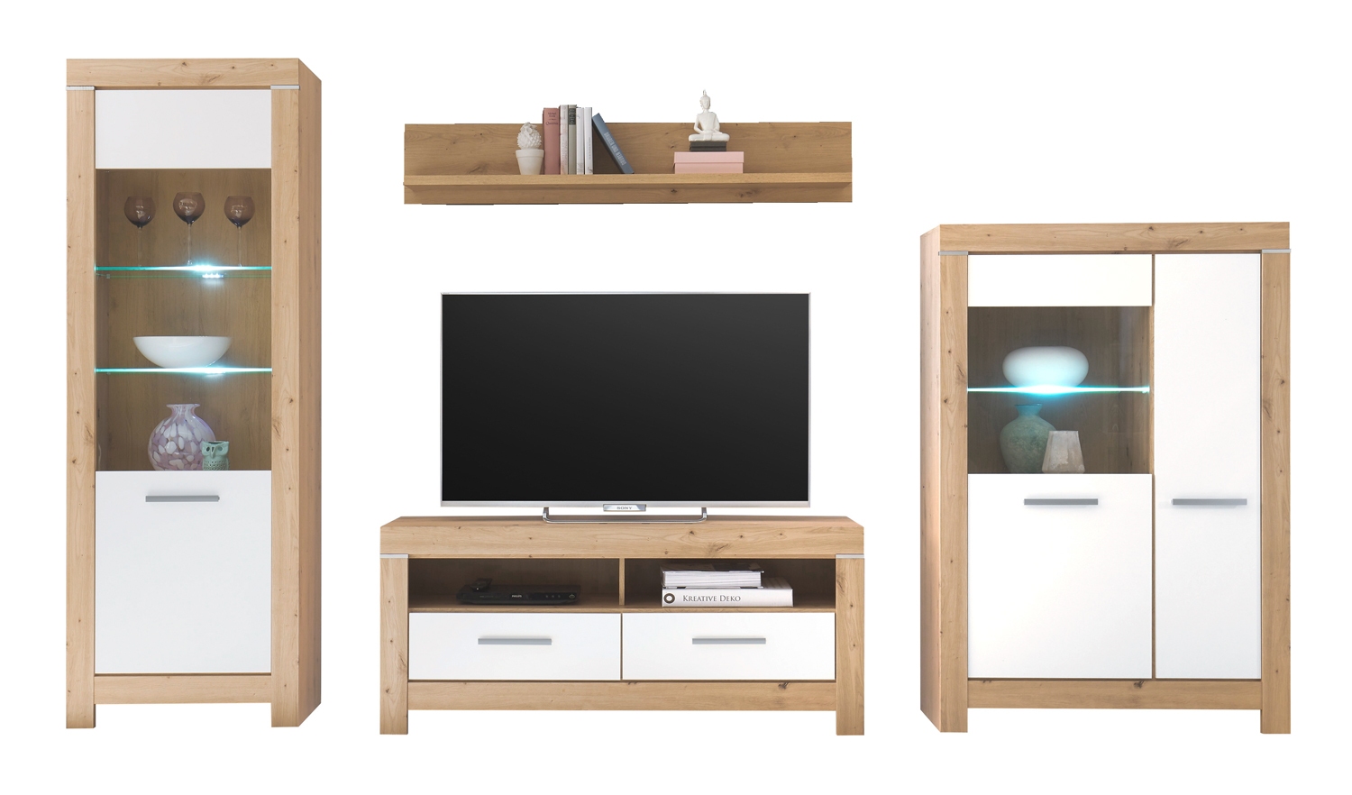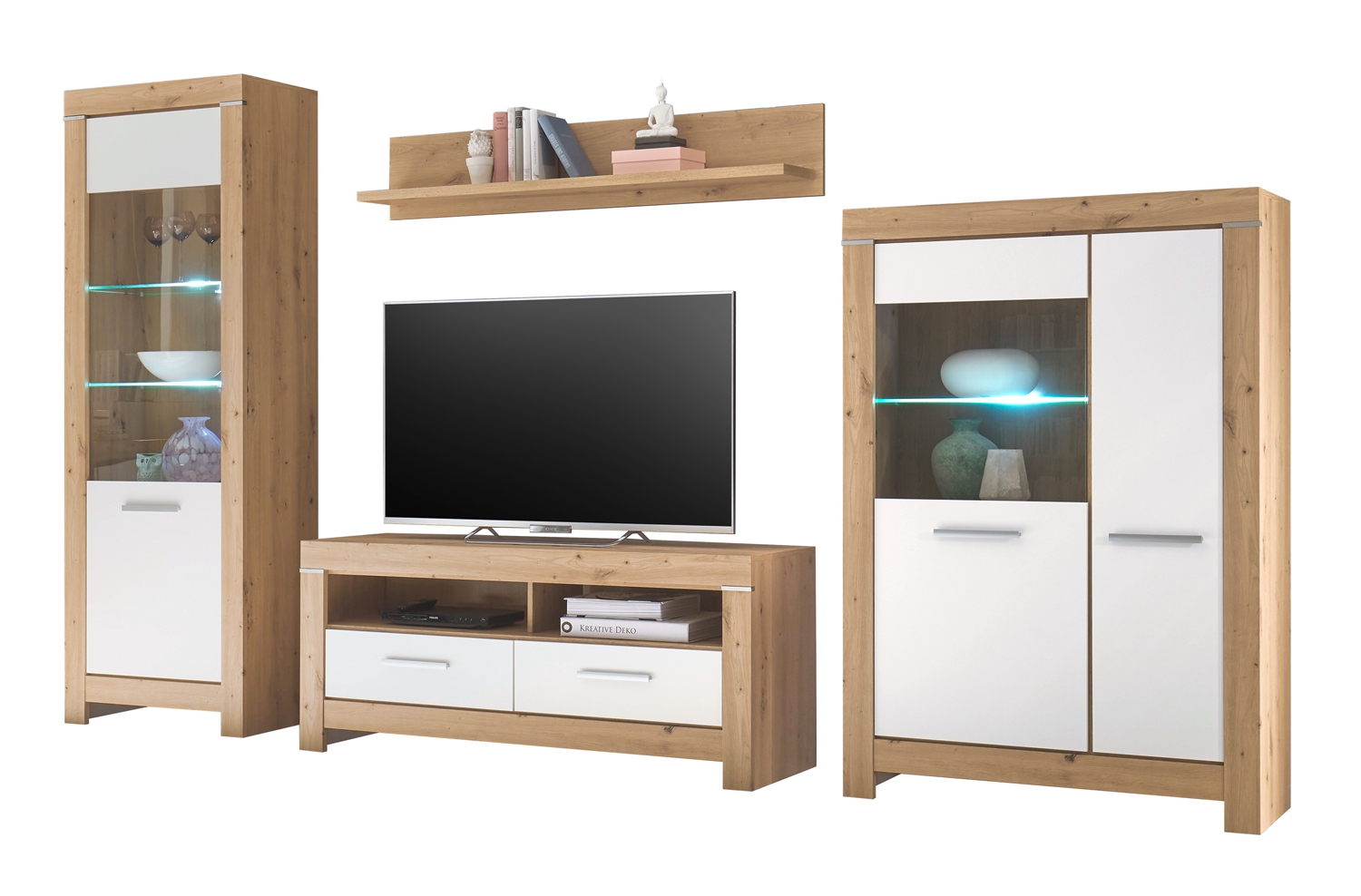 Artisan Eiche Dekor - Weiß matt - 4-teilig - mit LED-Beleuchtung