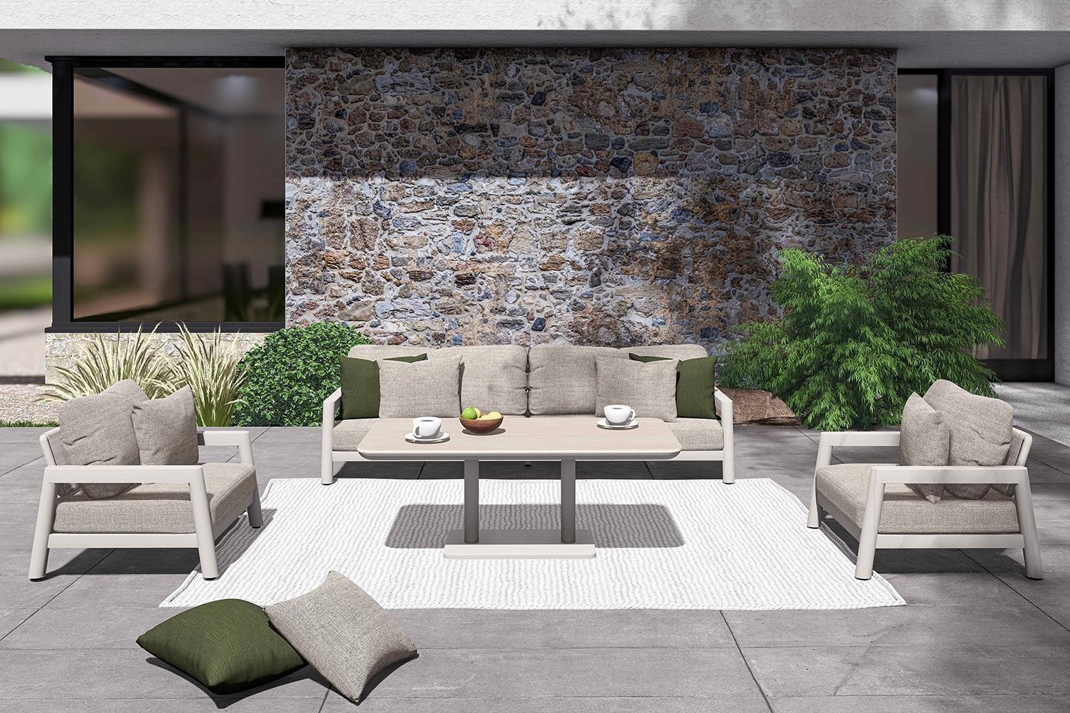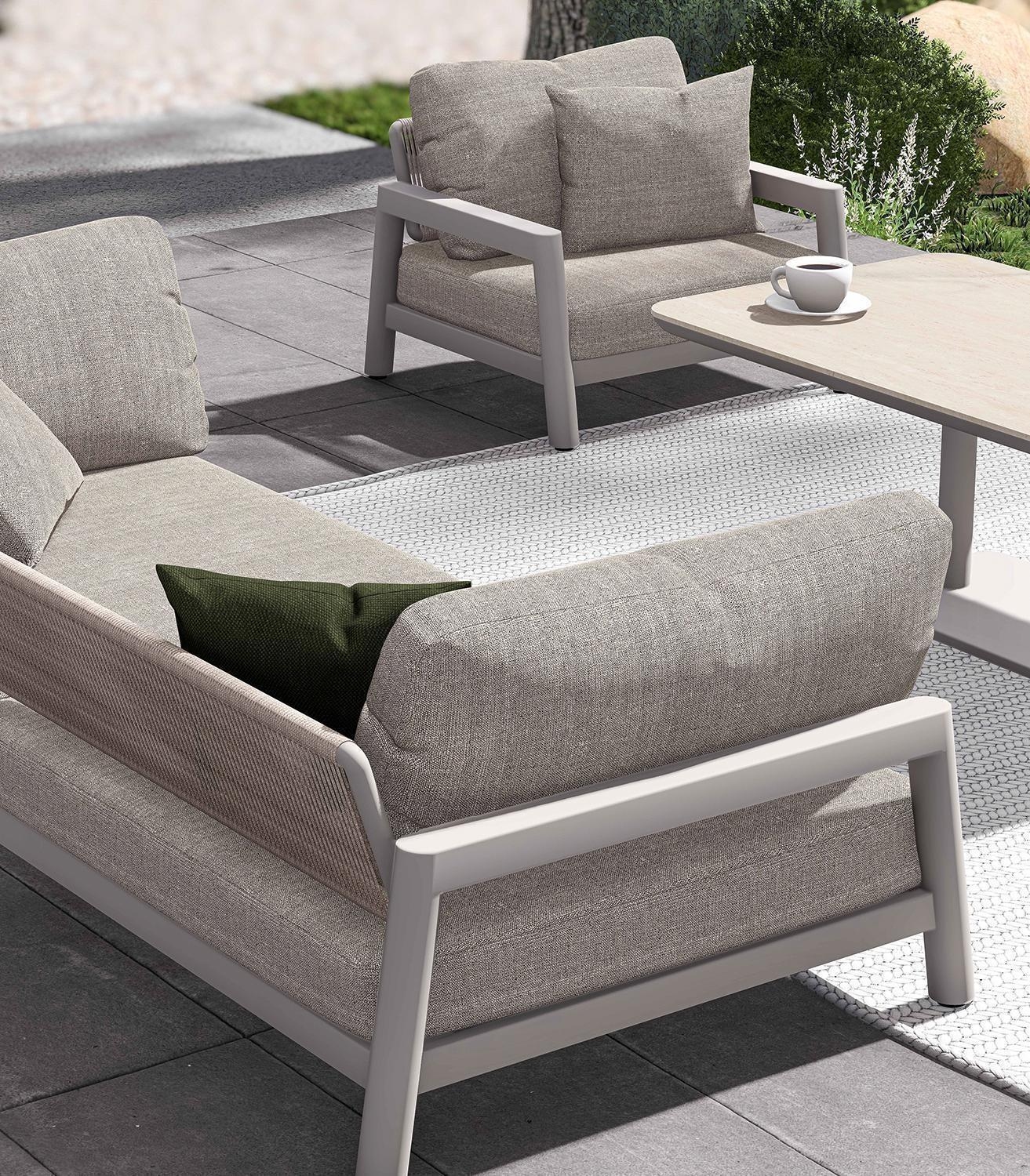 - Gartenlounge Sitzbank mit Aluminiumgestell in Taupe
