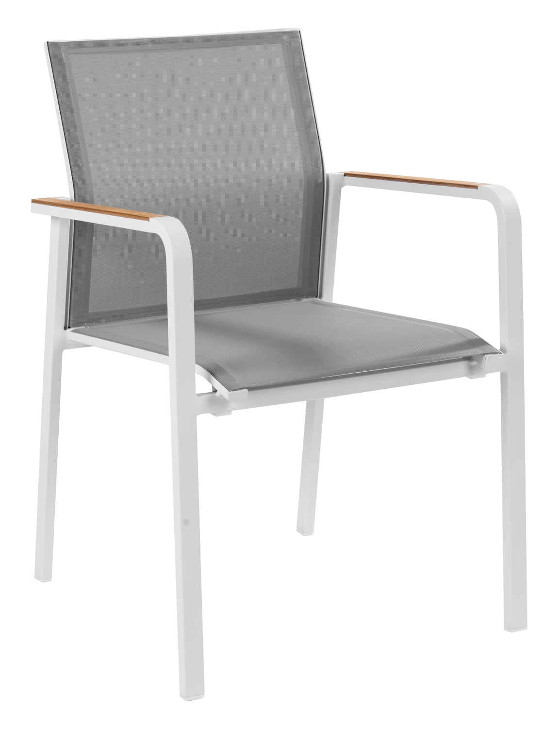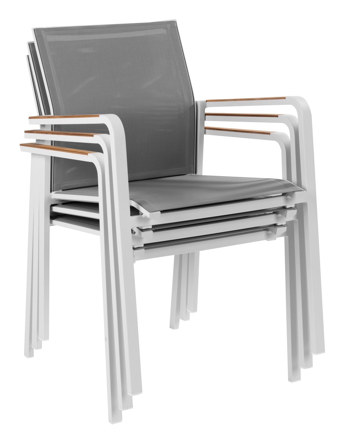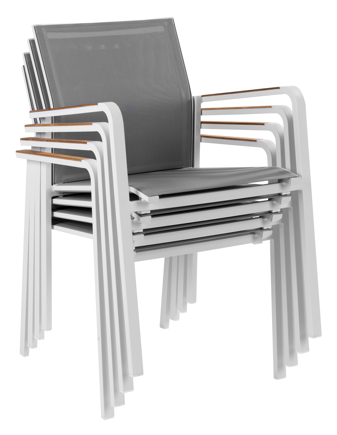 Weiß - Hellgrau - Textilen - Aluminiumrahmen - Teakholz - stapelbar