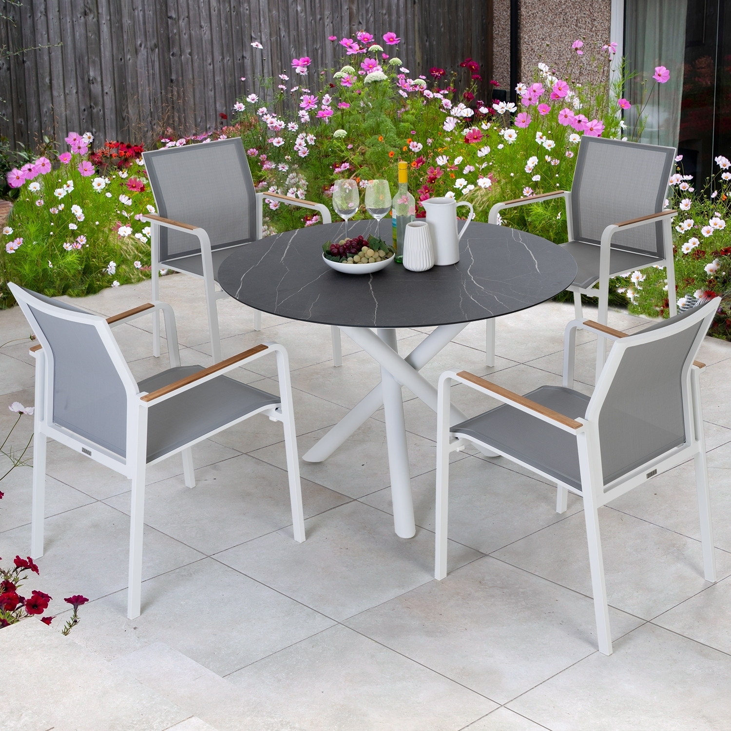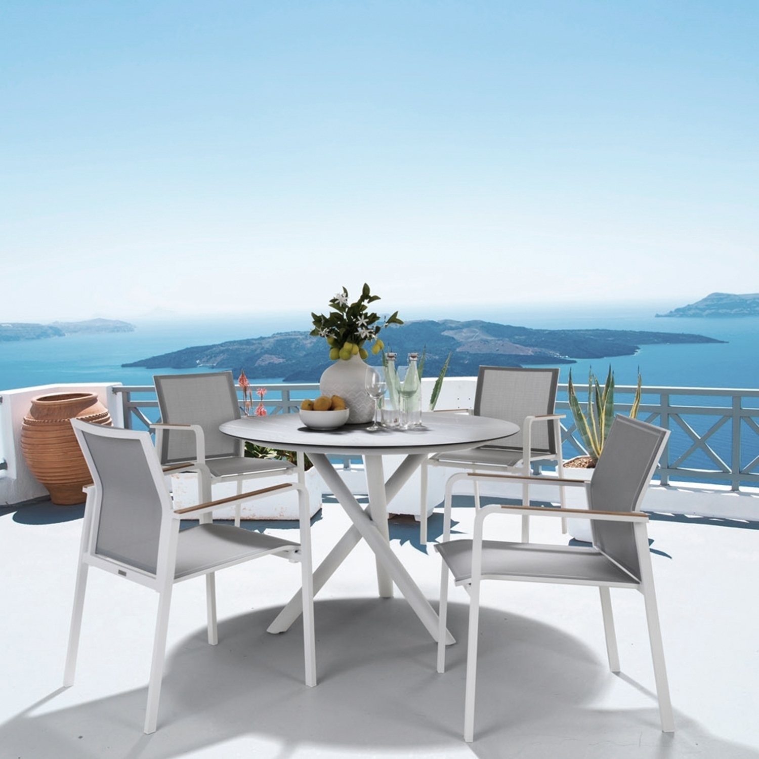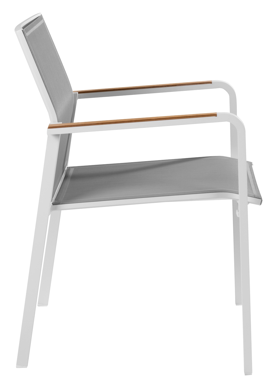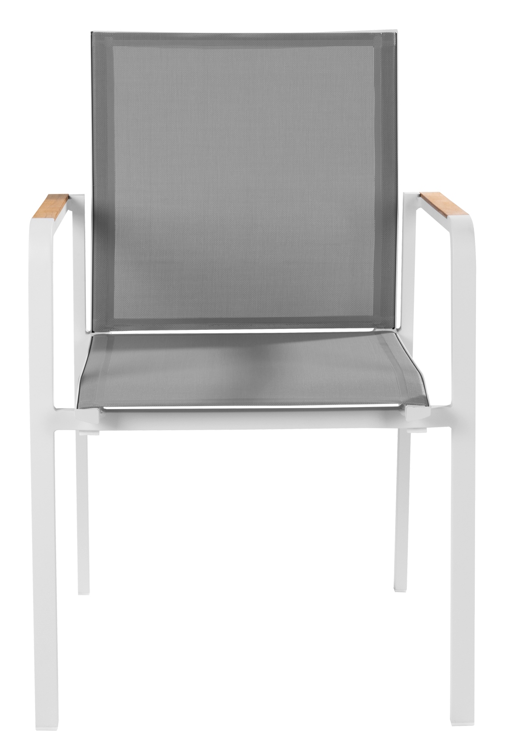 Weiß - Hellgrau - Textilen - Aluminiumrahmen - Teakholz - stapelbar