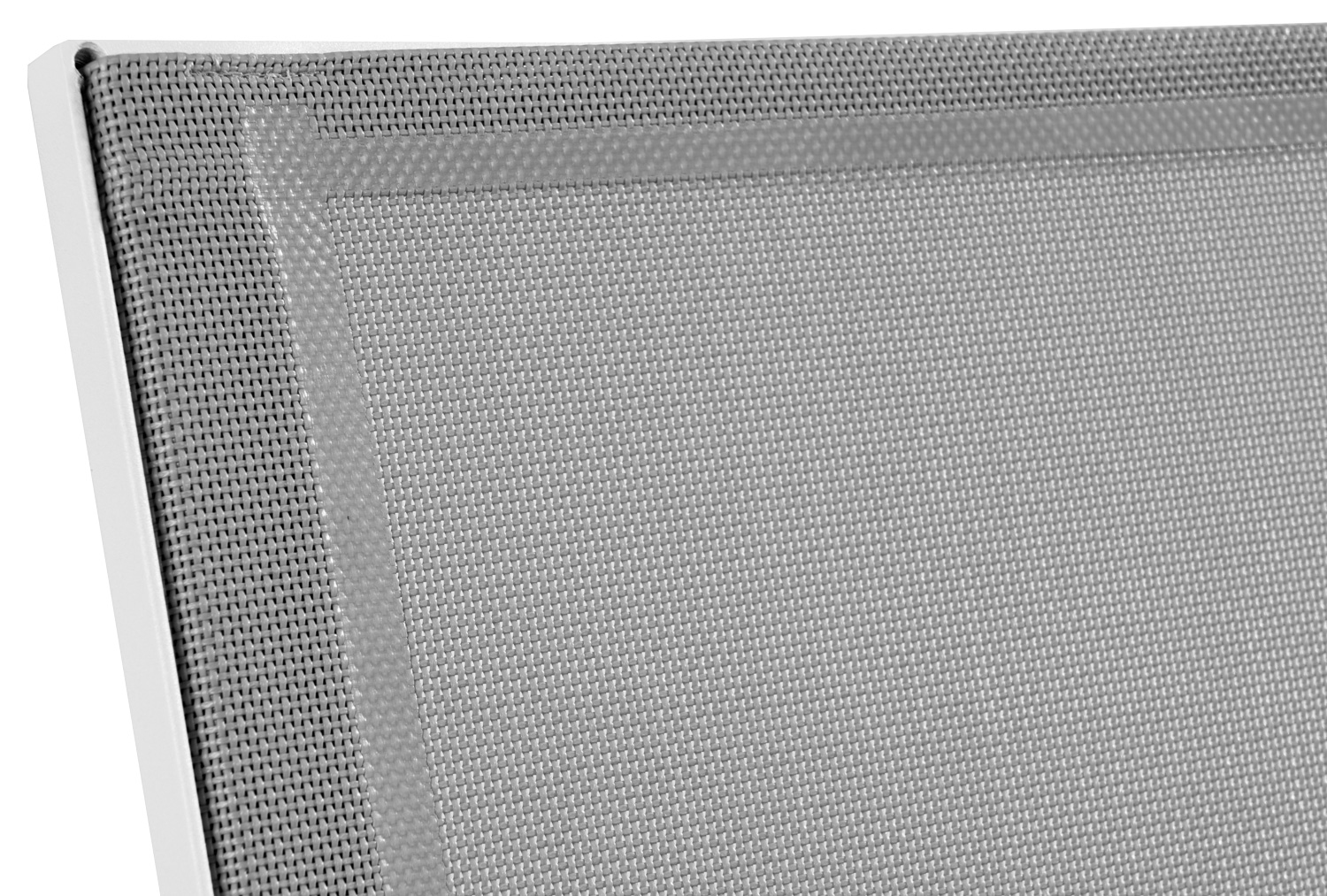 Die Sitz- und Rückenlehnenbespannung bestehen aus Textilen. Textilen ist ein mit PVC umwickeltes Polyestergewebe. Textilen zeichnet sich durch absolute Wetterfestigkeit, hohe UV-Beständigkeit, Farbbeständigkeit sowie Reißfestigkeit aus und ist darüber hinaus schnell trocknend. Das Gestell aus Aluminium verbindet sehr geringes Gewicht mit Langlebigkeit, hoher Resistenz gegen Witterungseinflüsse und ist zudem leicht zu handhaben. Das rostfreie Aluminium erhält durch hochwertige Pulverbeschichtung ein edles Oberflächenfinish, welches es unempfindlich gegen Witterungseinflüsse und pflegeleicht macht.