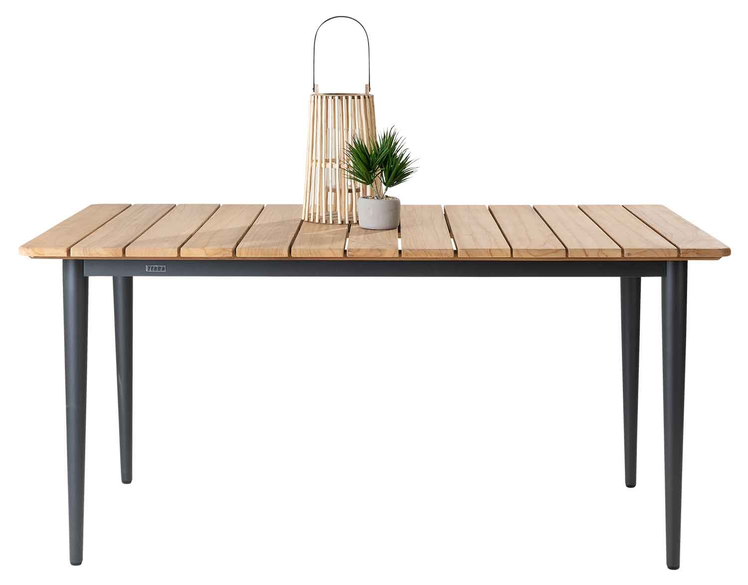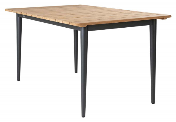 Die Tischplatte aus Teakholz ist robust und witterungsbeständig. Durch die natürlichen Öle im Holz ist das Material bereits gut geschützt und hat eine hohe Lebensdauer. Das Gestell aus Aluminium ist stabil, hitzebeständig, rostfrei und langlebig. Das Material ist ideal für Gartenmöbel, da es für die Verwendung im Außenbereich geeignet ist.