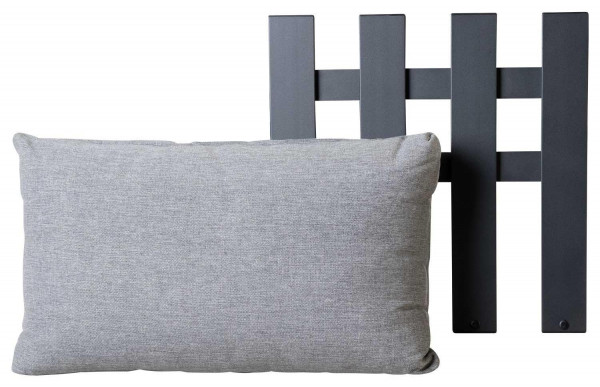 Das Rückenkissen-Set FLY der Marke Zebra besteht aus zwei Kissen in Grau und Graphitfarben. Jedes Kissen verfügt über ein Einsteckmodul aus pulverbeschichtetem Aluminium. Der Bezug besteht aus Olefin, einem wetterbeständigen Material. Die Maße betragen 52 cm in der Breite, 52 cm in der Höhe und 17 cm in der Tiefe.