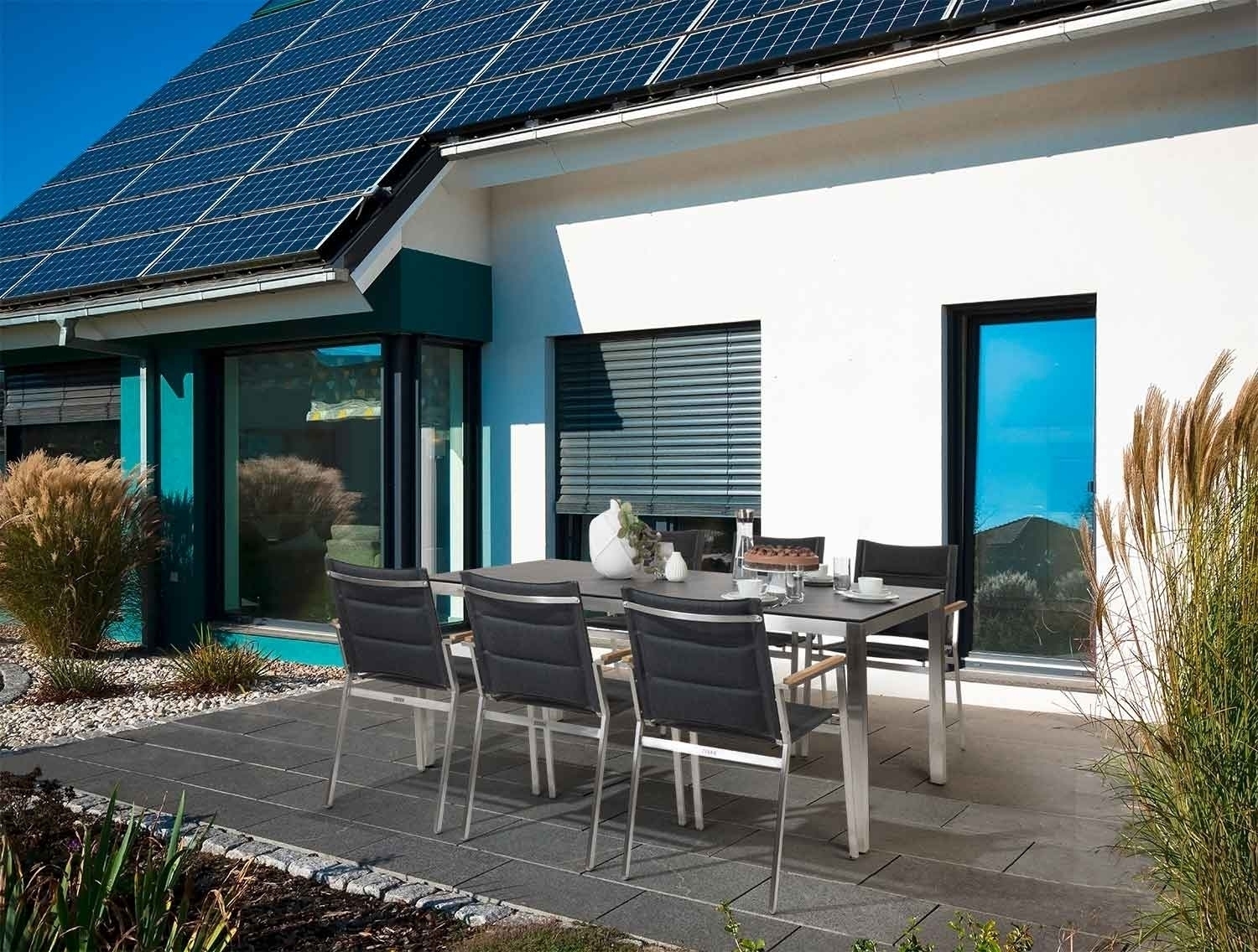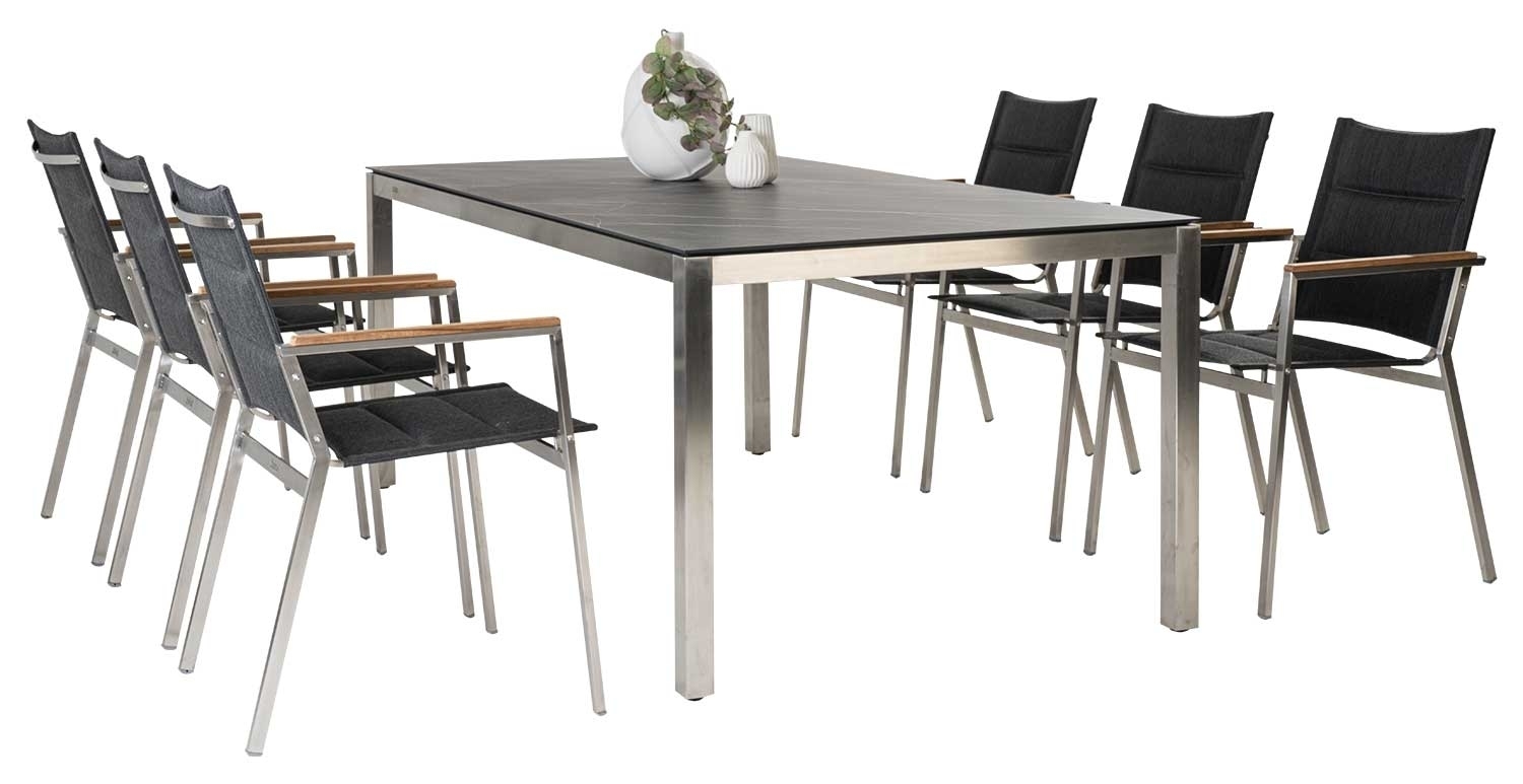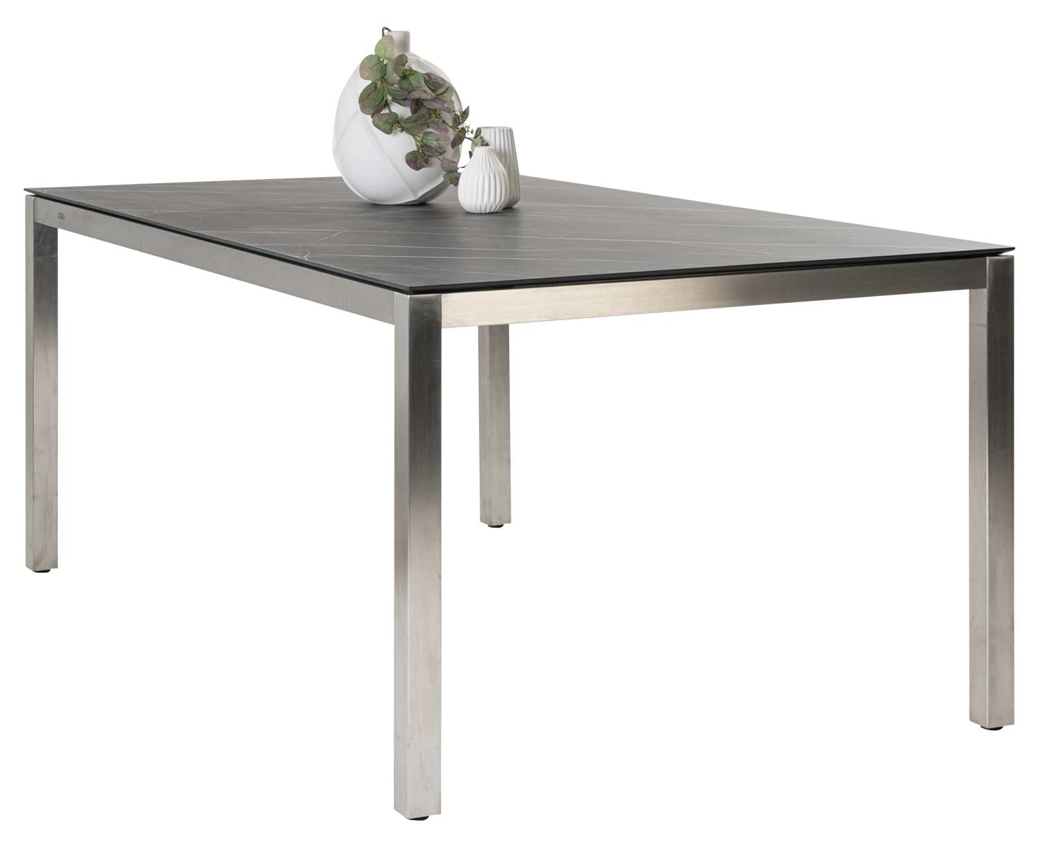 Die Tischplatte des Gartentisches besteht aus SELA Kunststofflaminat. Einem Material, das aus unter Hochdruck von mehreren verpressten Laminatschichten und Harzen entsteht und sehr witterungsresistent ist. Außerdem ist die Tischplatte wetterfest, schlagfest, glutfest, kratzfest, bruchfest und säurebeständig. Des Weiteren ist die Tischplatte kältefest, wodurch der Tisch auch in kälteren Monaten und sogar bei Schnee im Freien stehen kann.