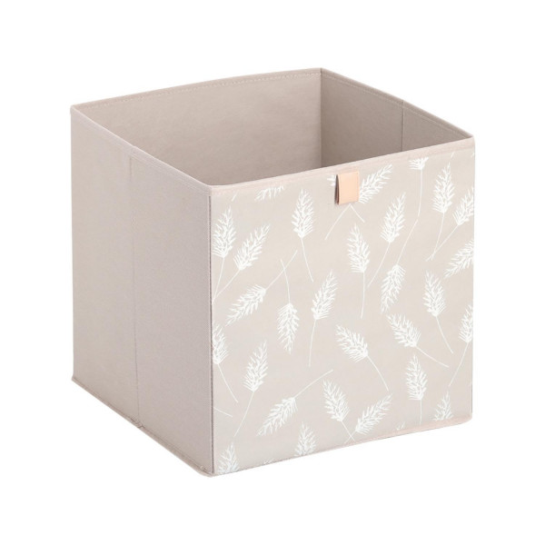 Die Aufbewahrungsbox STELLY von Zeller überzeugt mit ihrem beigen Design und stilvollen Pampasgrasmotiven in Weiß. Mit einer Größe von 32 x 32 x 32 cm bietet sie praktischen Stauraum für verschiedenste Utensilien. Außen aus robustem Kunststoff und innen mit weichem Vlies ausgekleidet, ist sie funktional und dekorativ zugleich. Die Box wird platzsparend flach verpackt geliefert und ist eine ideale Lösung für Ordnung im Regal oder Schrank – ganz ohne Deckel.