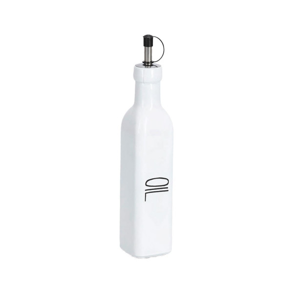 Die Ölflasche BASMA von Zeller besteht aus weißem Glas und ist mit einem Deckel aus Metall ausgestattet, der zusätzlich über einen Verschluss aus Silikon verfügt. Ihr Fassungsvermögen beträgt 270 ml. Auf der Vorderseite befindet sich ein schwarzer Schriftzug mit der Aufschrift „Oil“. Die Flasche ist ausschließlich für die Reinigung per Hand geeignet. Ihre Maße betragen 5 cm in der Breite, 24,5 cm in der Höhe und 5 cm in der Tiefe.