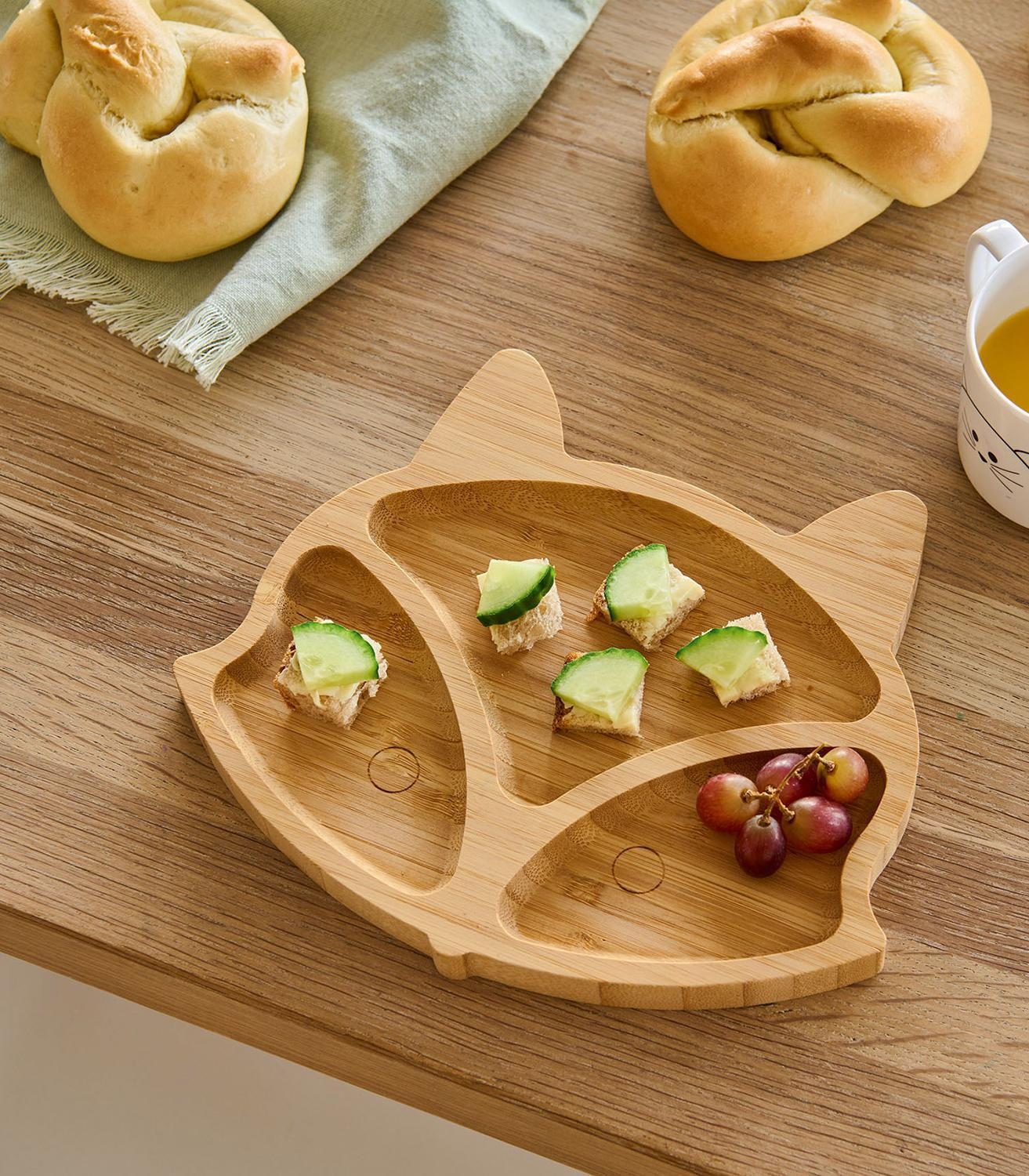 Der Snackteller LILLIAN von Zeller präsentiert sich in einem charmanten Braunton und bietet mit seinen Maßen von 19,5 x 23 cm ausreichend Platz für eine Vielzahl von Snacks. Hergestellt aus Bambus, besticht er durch seine einzigartige Fuchsform und verfügt über drei separate Ablagen für verschiedene Snacks.