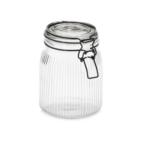 Das Vorratsglas WIPELO von Zeller vereint praktische Funktion mit stilvollem Design. Gefertigt aus transparentem Glas in eleganter Rillenoptik, ermöglicht es jederzeit einen klaren Blick auf den Inhalt. Der luftdichte Deckel mit schwarzem Bügelverschluss bewahrt trockene Lebensmittel wie Mehl, Zucker oder Müsli zuverlässig frisch. Mit einem großzügigen Fassungsvermögen von 1000 ml bietet es reichlich Platz für Ihre Vorräte.