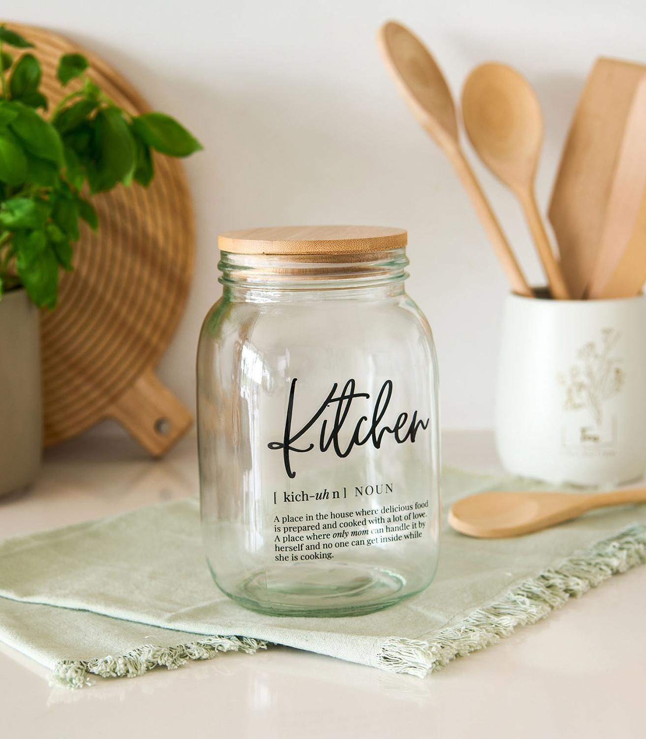 Das Vorratsglas ALYSA von Zeller ist ein praktischer und stilvoller Begleiter für Ihre Küche. Es besteht aus transparentem Glas und ermöglicht so stets einen schnellen Überblick über den Inhalt. Der Deckel aus braunem Bambusholz sorgt für eine natürliche Optik und hält Lebensmittel wie Reis, Quinoa, Linsen oder Haferflocken frisch. Mit einem Fassungsvermögen von 1400 ml bietet es reichlich Platz. Ein dekorativer Schriftzug "Home" verleiht dem Glas eine persönliche Note.
