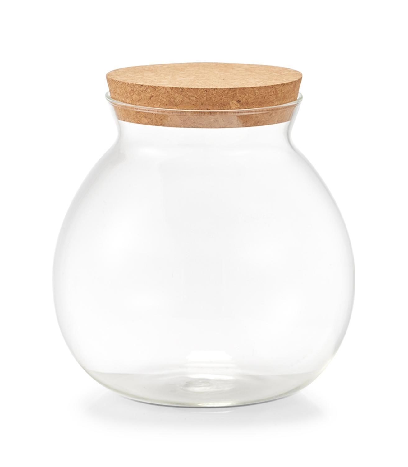 Ø 15 x H 16 cm - Transparent - Braun - Glas - Korkdeckel - 1700 ml