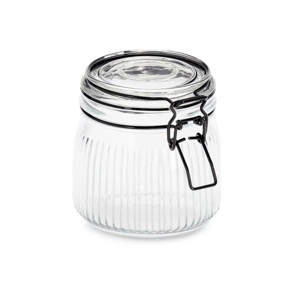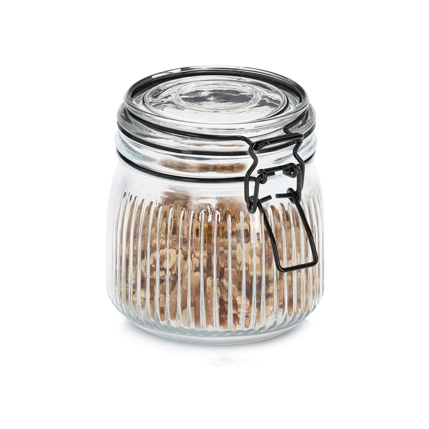 Das Vorratsglas WIPELO von Zeller vereint praktische Funktion mit stilvollem Design. Gefertigt aus transparentem Glas in eleganter Rillenoptik, ermöglicht es jederzeit einen klaren Blick auf den Inhalt. Der luftdichte Deckel mit schwarzem Bügelverschluss bewahrt trockene Lebensmittel wie Mehl, Zucker oder Müsli zuverlässig frisch. Mit einem großzügigen Fassungsvermögen von 600 ml bietet es reichlich Platz für Ihre Vorräte.