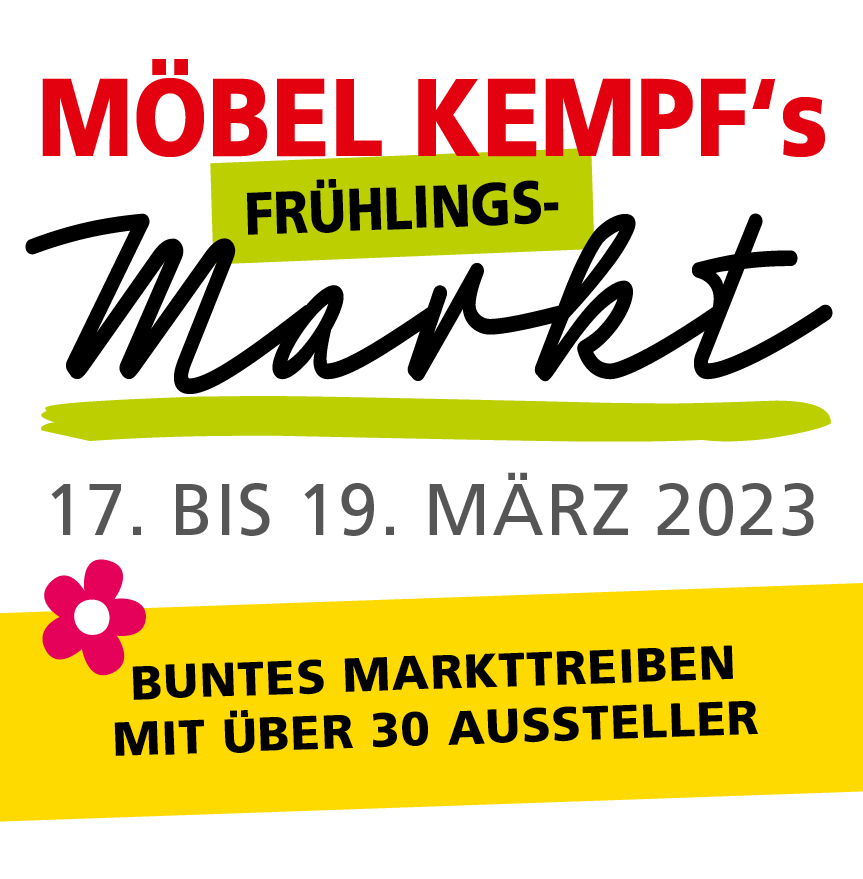 Am kommenden Wochenende findet in Aschaffenburg unser erster Frühlingsmarkt statt. Ein neues Veranstaltungsformat, das wir in diesem Jahr ins Leben rufen. Besuchen Sie vom 17. bis 19. März unser Möbelhaus in Aschaffenburg und erleben Sie buntes Markttreiben mit vielen Highlights: