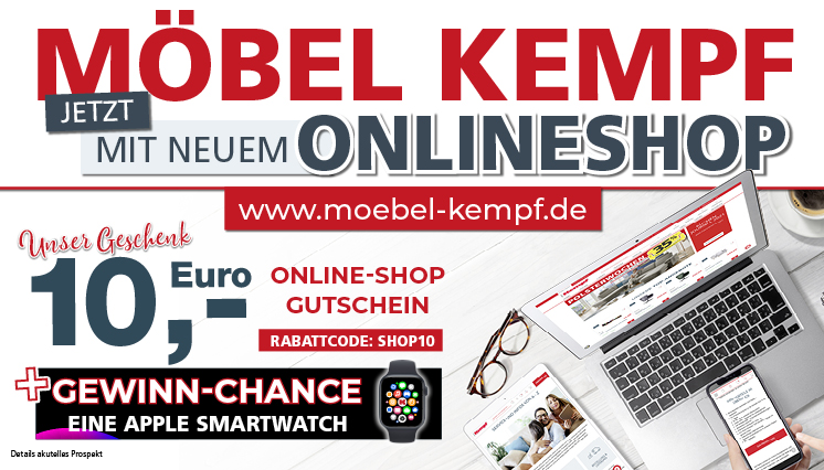 Im Aktionszeitraum erhalten Sie bis zu 25 % auf Möbel und bis zu 50 % auf frei geplante Küchen. Außerdem gibt es für Sie im Rahmen der Eröffnungs-Aktion einen 10 € Gutschein für Ihre Onlinebestellung (CODE: SHOP10) und Sie kommen in den Lostopf für eine Apple-Smartwatch. Alles Infos zur Aktion finden Sie hier.
