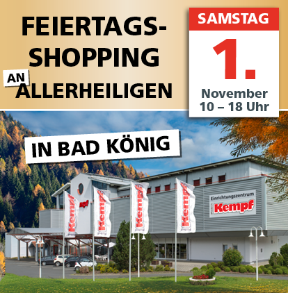 Lust auf einen entspannten Einkaufsbummel am Feiertag? Am 01.11. haben wir am bayerischen Feiertag in Hessen für Sie geöffnet!