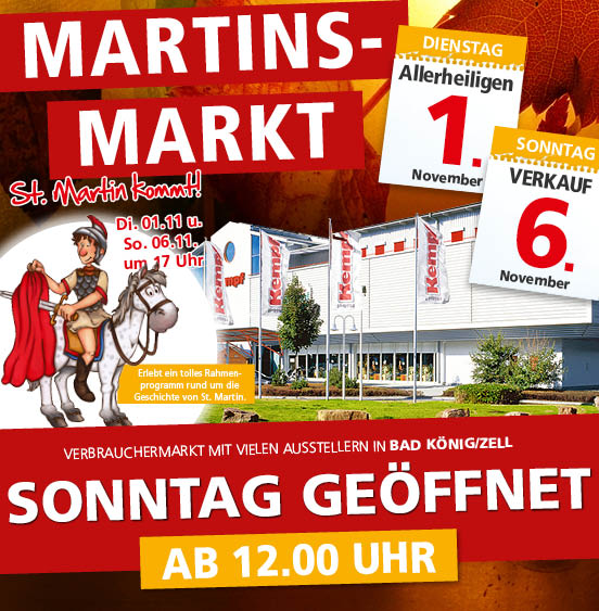 Auch dieses Jahr findet wieder unser bekannter Martinsmarkt in Bad König statt! Die ganze Woche über haben wir unseren Weihnachtsmarkt, exklusive Angebote, Gutscheine für Sie und ein Rahmenprogramm für klein und groß: