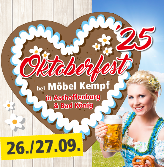 Am 26. und 27.09. empfangen wir Sie endlich wieder zu unserem großen Oktoberfest in Aschaffenburg und Bad König! Mit traditionellen Schmankerln, kühlem Bier und passender Live-Musik ist das Fest-Feeling vorprogrammiert. Außerdem stehen noch viele weitere Highlights für Groß und Klein auf dem Programm.
